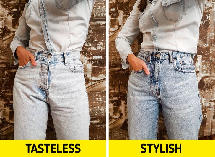 Forma și locația buzunarelor din spate pot schimba semnificativ aspectul corpului tău. Buzunarele care sunt plasate la o distanță mare unul de celălalt îți vor face șoldurile să pară mai largi. Iar buzunarele care sunt așezate sus îți vor face picioarele mai lungi vizual și partea din spate mai curbată.