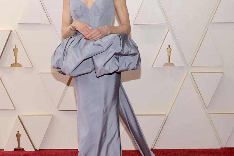 Kirsten Dunst în Christian LacroixLa fel de atrăgătoare au fost rochiile strălucitoare: Jessica Chastain, într-o rochie mov strălucitoare Gucci; rochia Louis Vuitton festonată a Alanei Haim; ținuta Prada auriu al Lupitei Nyong’o, care a fost împodobită cu flori mici roz, și rochia cu trenă Armani Privé gri ardezie a lui Nicole Kidman.